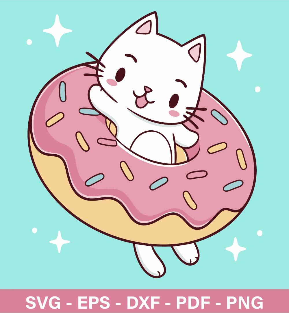 Kawaii Donut Cat SVG Bundle – Cute Cat in Donut Clipart (SVG, PNG, EPS, DXF, PDF)